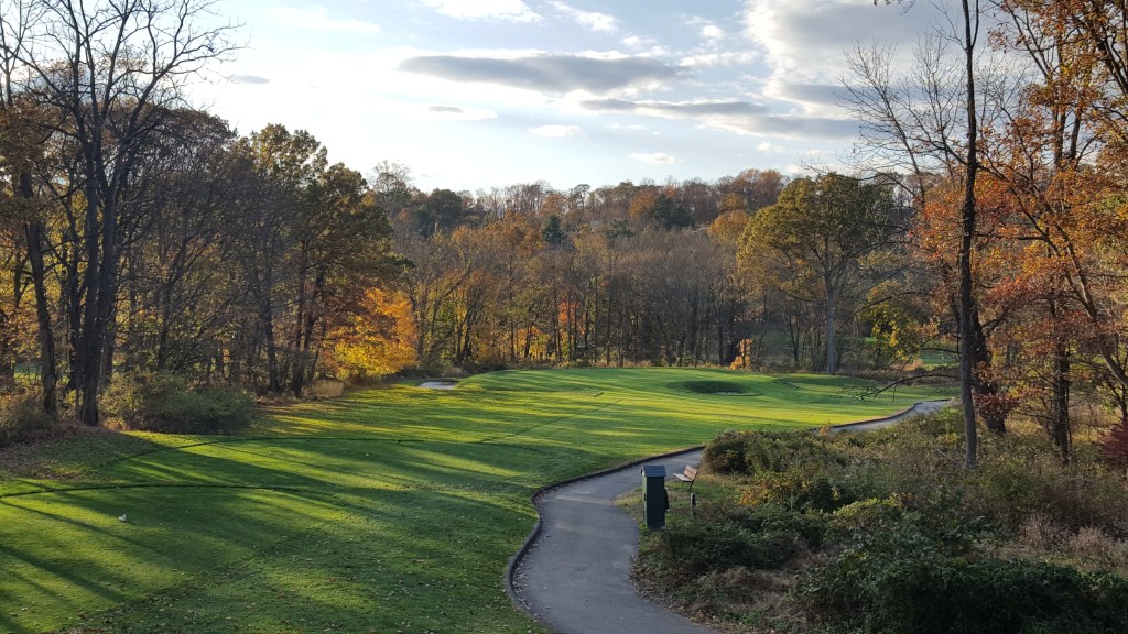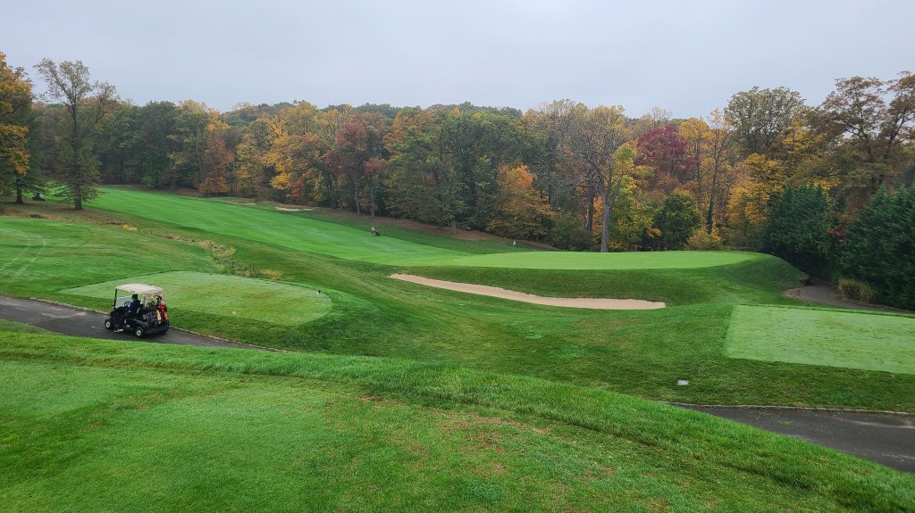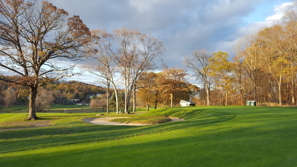 I have to say, it took some time through the round, but it grew on me. At $89 on a weekend in November for a now-public golf course, it had to live up to that price. At that rate, you’re approaching the finest publics in the state (i.e. Neshanic Valley, the Crystal Springs resort courses, etc.). But I started to appreciate the design elements after a while. I began to see what the course would look like in prime conditions, without the leaves all over the place, and it is a quality course.