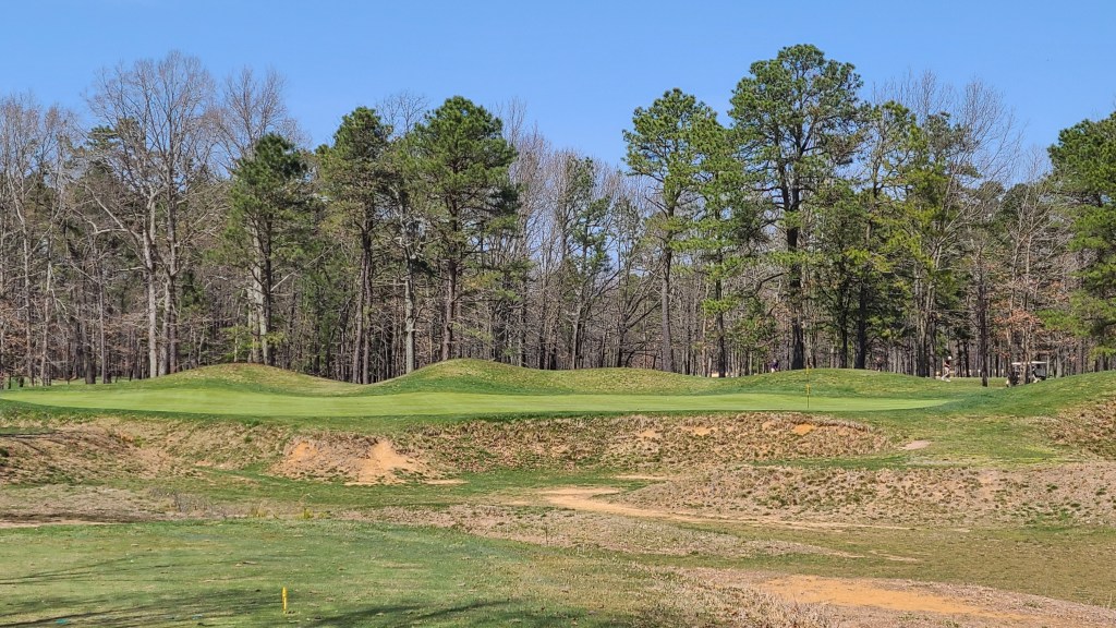 Too fatigued to truly be phased, I continue on and discover that Shore Gate is an absolute gem. My slightly-worse-than-average play does not distract from the course’s beauty. Hole after hole is littered with outstanding design. Incredible bunkering, some waste areas, and the pines of southern New Jersey all frame this perfectly manicured layout. At this point, I’m almost focused more on where I can get good pictures to capture the landscape than how I’m playing.