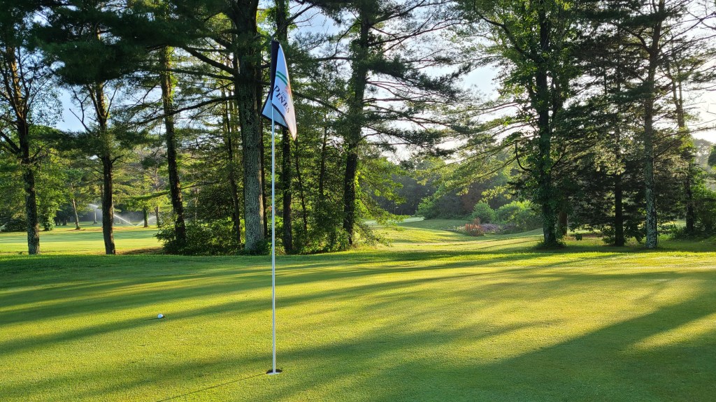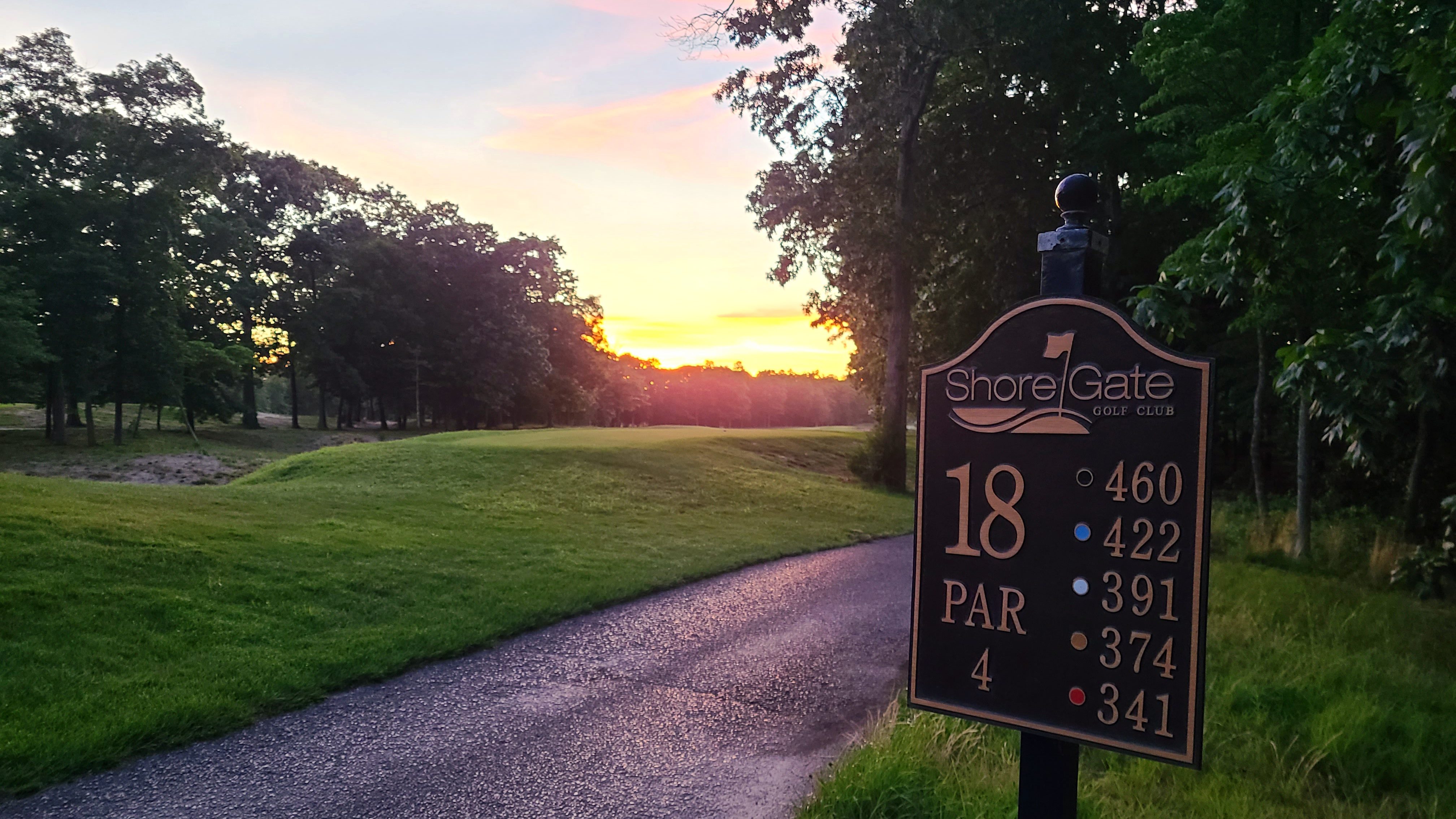 I get to 13, and I’m teeing off directly into the setting sun. Enough time has elapsed in this round where I would have finished any of the previous five courses I’ve played today. But Shore Gate isn’t an executive course. It’s a par-72 that plays over 7,200 yards from the back tees. I’m playing from the White tees, just shy of 6,400. It’s honestly my limit and I’m regretting not playing the 5,940-yard Gold tees.