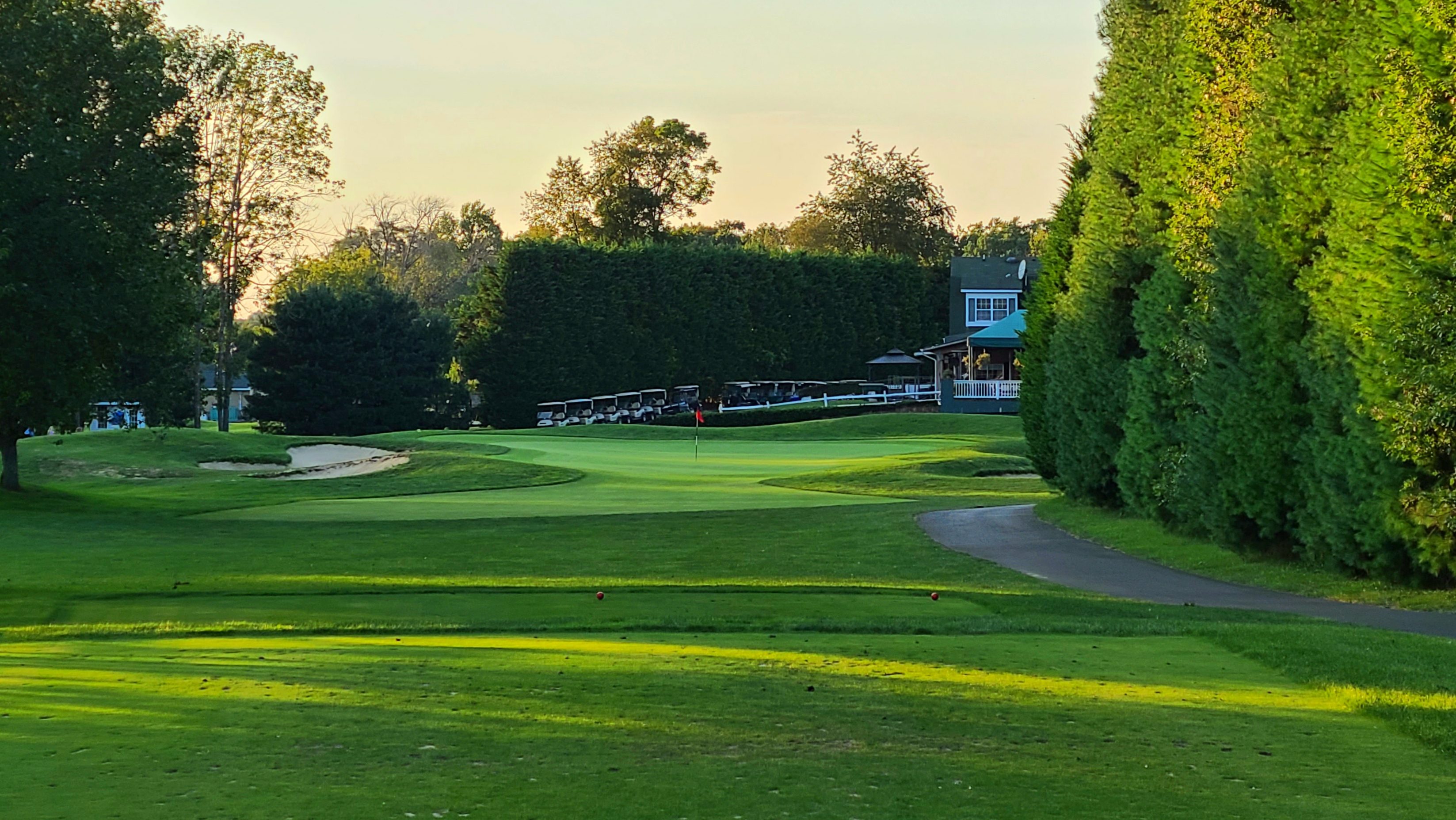Walking the 1st fairway, you get a peak at the green at 3 coming back in this direction.