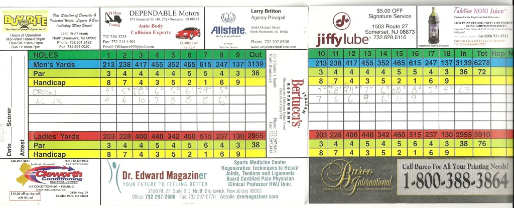 Continuing the theme of my last post, I’ve got more, out-of-order courses to tell you about. As I mentioned, the first three courses I played were all at points before and up to June 2006. Very shortly after that, my wife and I had just gotten an apartment together in Middlesex County. From there, I would play an additional four courses over the next few years.
