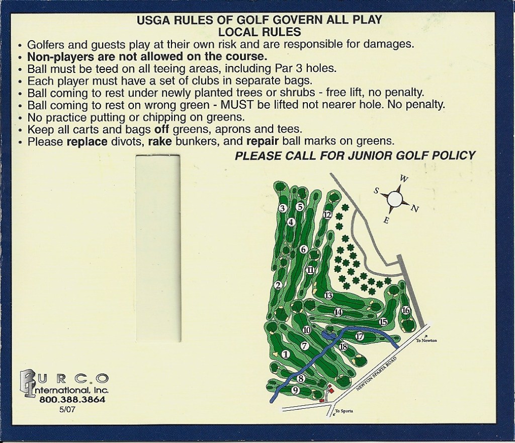 While I have an undated scorecard of a round with someone I worked with from 2006 to 2008, I counted Rolling Greens Golf Club in Newton as the 14th I had played based on a round played with two of my best friends in August 2013.
